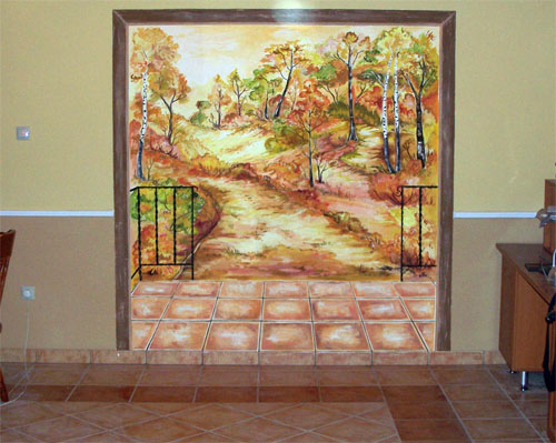 Miután az előkészítő munkákkal elkészültünk, jöhet a festés. Előbb mintafestést készítünk egy kis felületen, hogy még egy finom korrekcióra lehetőség nyíljon a színezésben, aztán jön a nagy felületek festése, valamint a szegélyek precíz meghúzása.